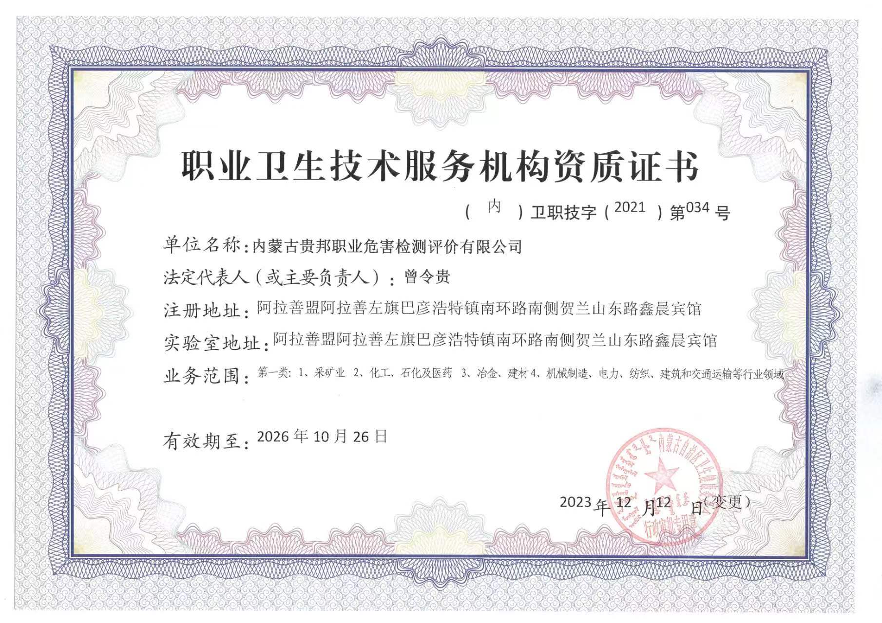 內(nèi)蒙古貴邦職業(yè)危害檢測評價有限公司(m.ozb2000.com)版權(quán)所有 地址:阿拉善盟阿拉善左旗賀蘭山東路加氣站南側(cè)鑫晨賓館一樓 24小時熱線:18947252199 蒙ICP備:蒙ICP備21006705號-1 公安備案號:50011802010212